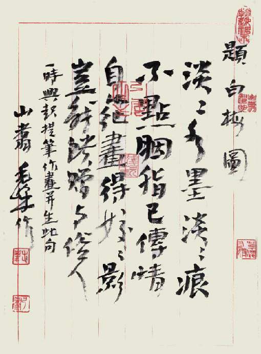 毛峰:行书题白梅图