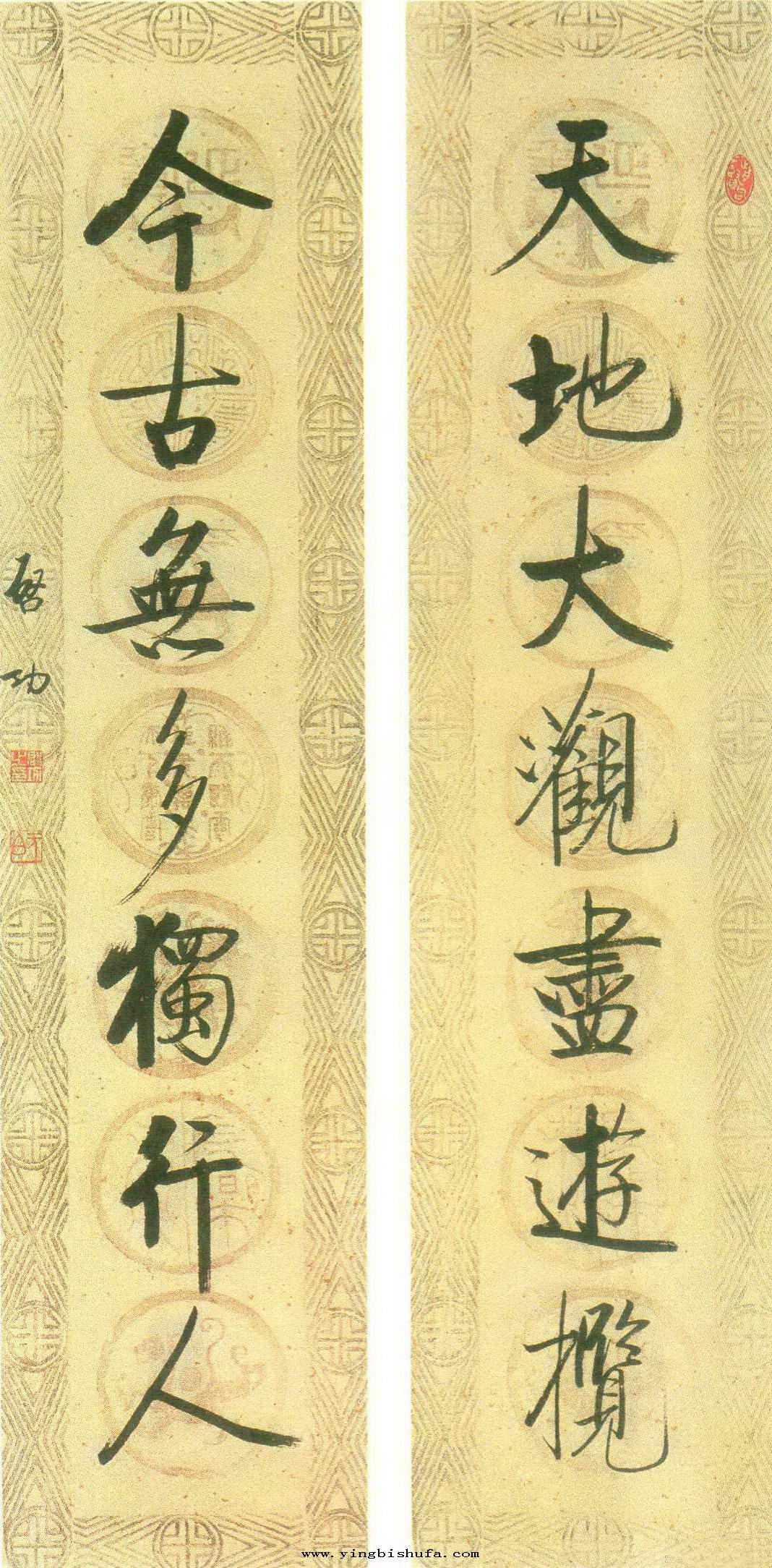 启功:行书七言联(天地大观尽游揽今古无多独行人)