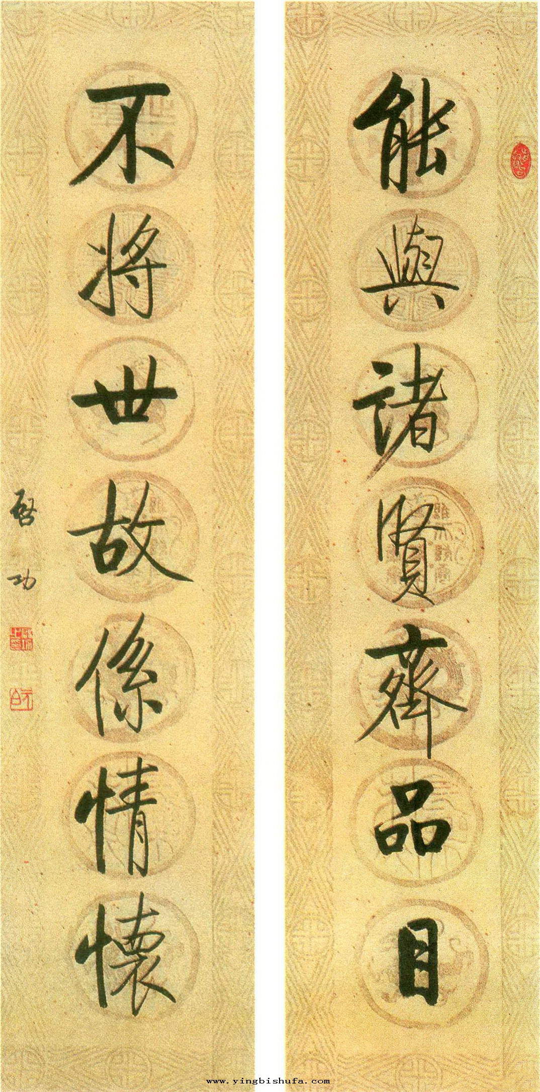 启功:楷书七言联(能与诸贤齐品目不将世故系情怀)