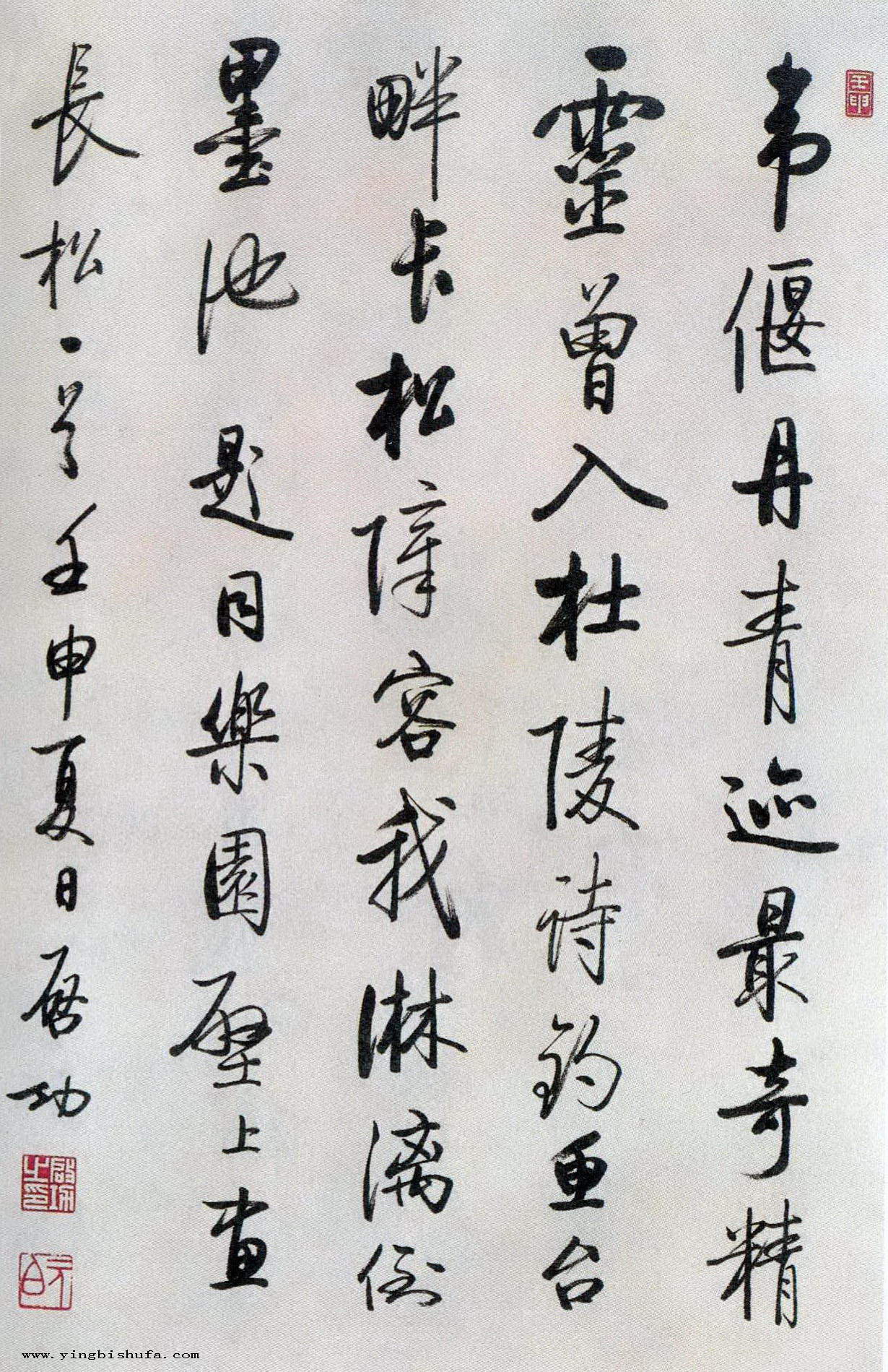 启功:行书题同乐园壁上画长松一首