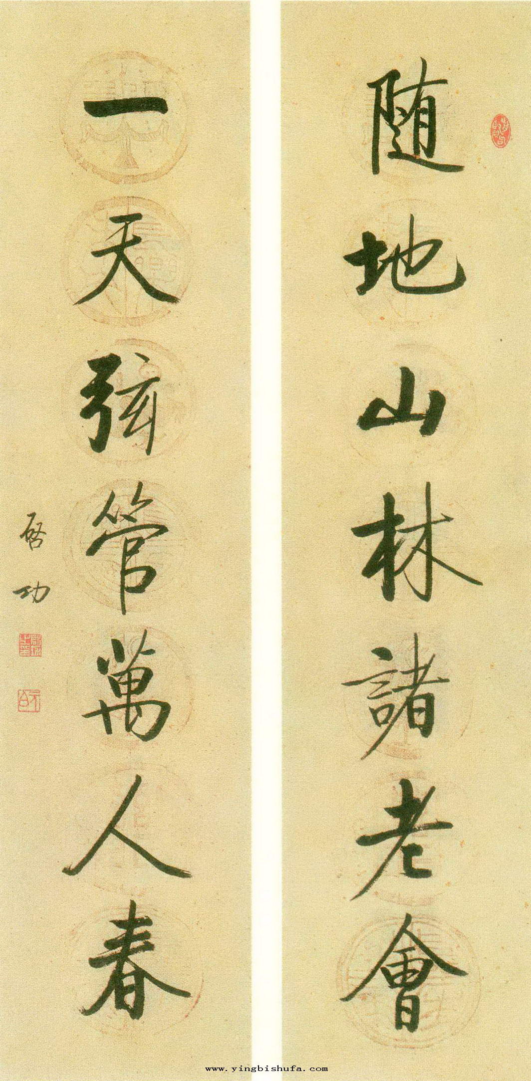 启功:楷书七言联(随地山林诸老会一天弦管万人春)