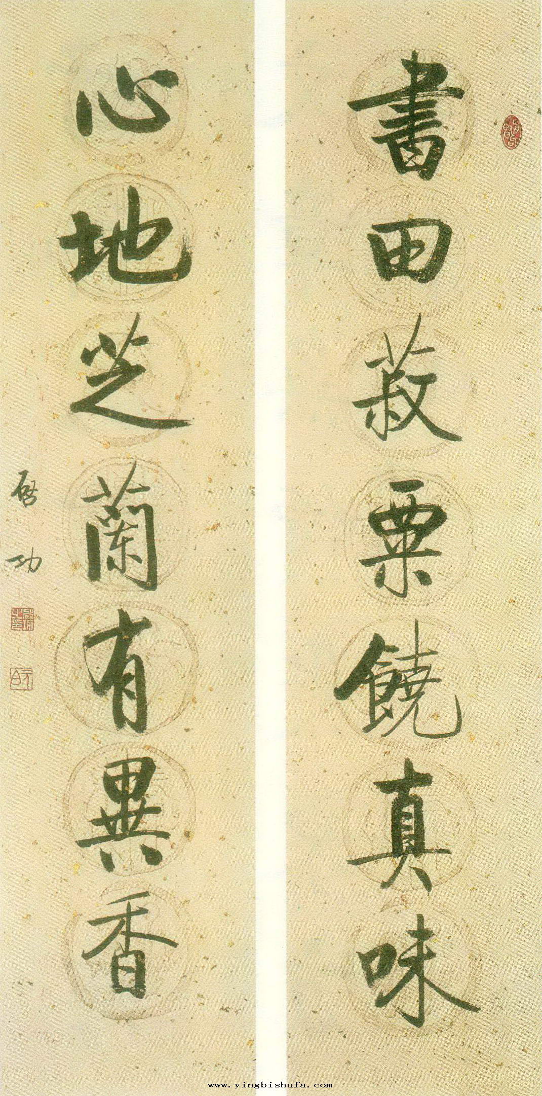 启功:楷书七言联(书田菽粟饶真味心地芝兰有异香)