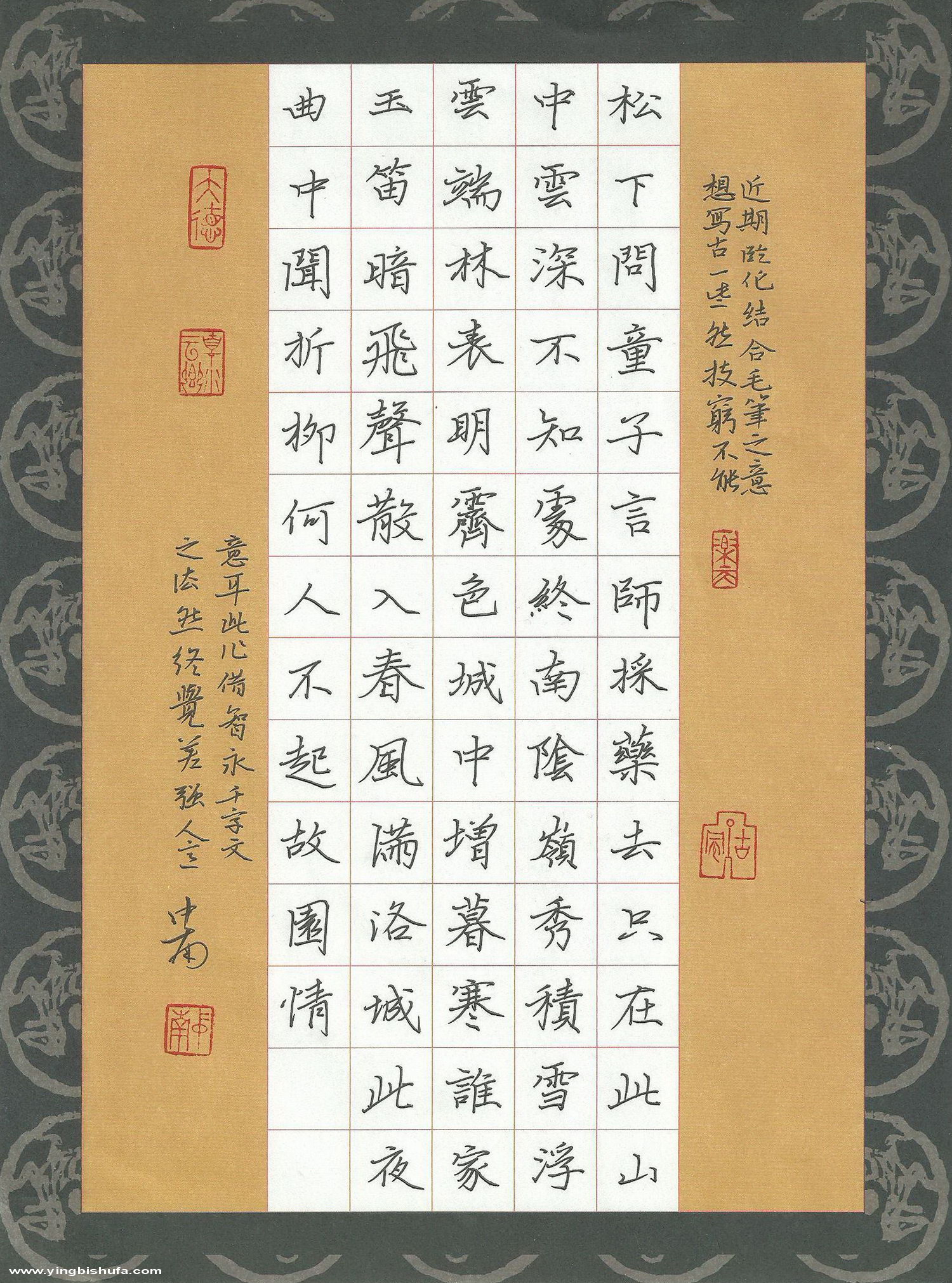 创作提示:可写两首七绝,或写三首五绝,其余写落款。