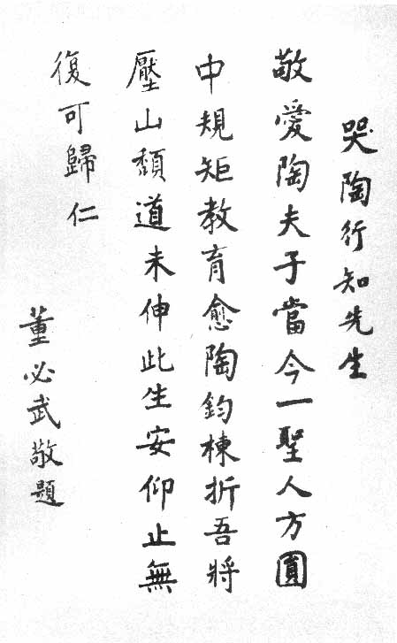 【董必武】(1886-1975)原名董贤琮,又名董用威,字洁畲,号壁伍。湖北黄安(今红安)人。历任中央财经委员会主任,政务院副总理,政务院政法委员会主任,最高人民法院院长,全国政协副主席,中共中央监察委员会书记,中华人民共和国副主席、代理主席。1975年1月任第四届全国人大常委会副委员长。是中共六届中央委员,七、八、九届中央政治局委员,十届中央政治局常委。