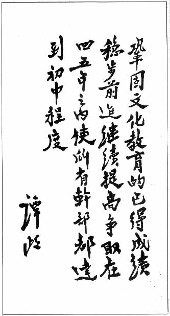 【谭政】(1906-1988)湖南湘乡人。抗日战争时期,任八路军后方政治部主任,总政治部副主任,陕甘宁晋绥联军副政委兼政治部主任。解放战争时期,任东北民主联军政治部主任,第四野战军副政委兼政治部主任。建国后,历任中南军区暨第四野战军第三政委兼干部管理部部长,中南局第一副书记,华南分局第三书记,华南军区政委,中国人民解放军总政治部第一副主任、主任,中央军委常委、顾问,国防部副部长,中央监委副书记。1955年被授予大将军衔。