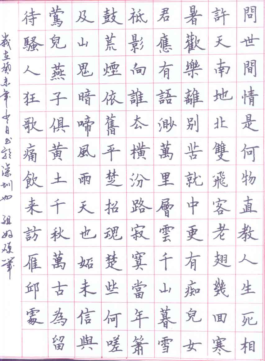 5.×óÆðµÚ¶þÐеġ°Ç§¡±×Ö£¬ÖÐÊú´ÓÆð±ÊÖ±½Ó¹ý¶Éµ½ÁËÊձʣ¬±Ê»µÄÖжβ»¹»·áÂú£»¡°Ì䡱×ÖµÄÊúÔò´Óͷѹµ½µ×£¬ÏÔ½©¡£