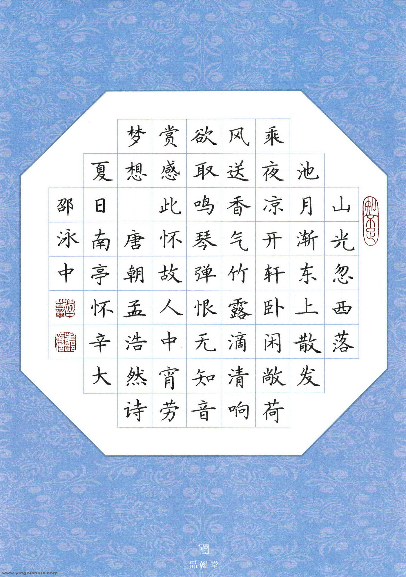 书写用材:钢笔、品翰堂16开学生田字格硬笔书法创作纸
