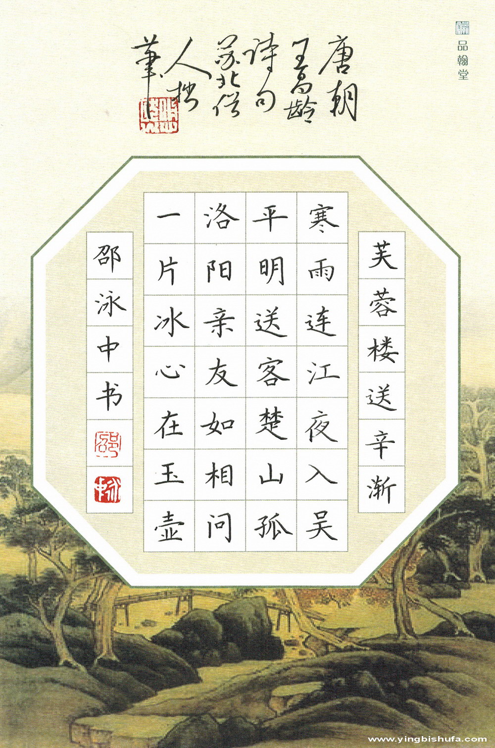 邵泳中硬笔楷书王昌龄诗芙蓉楼送辛渐