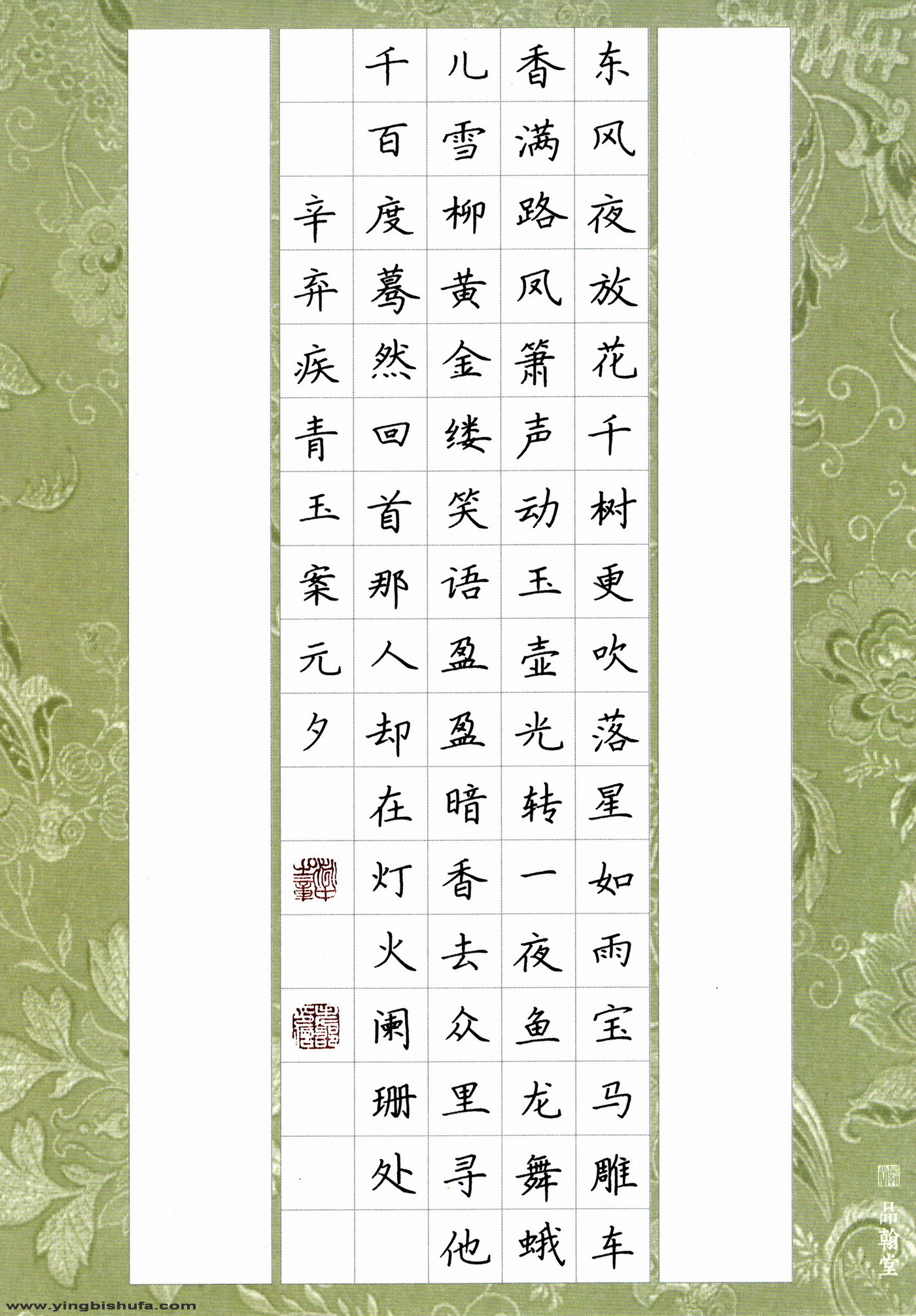 邵泳中硬笔楷书辛弃疾词青玉案元夕一首