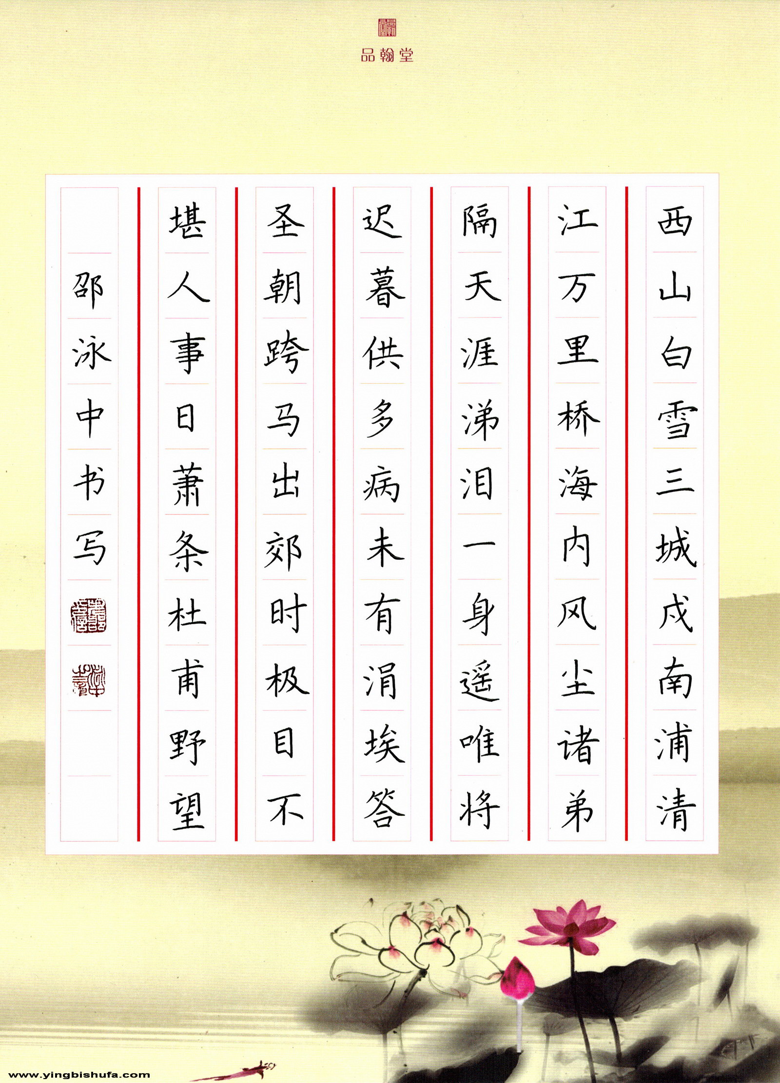 书写用材:钢笔、品翰堂A4硬笔书法创作纸