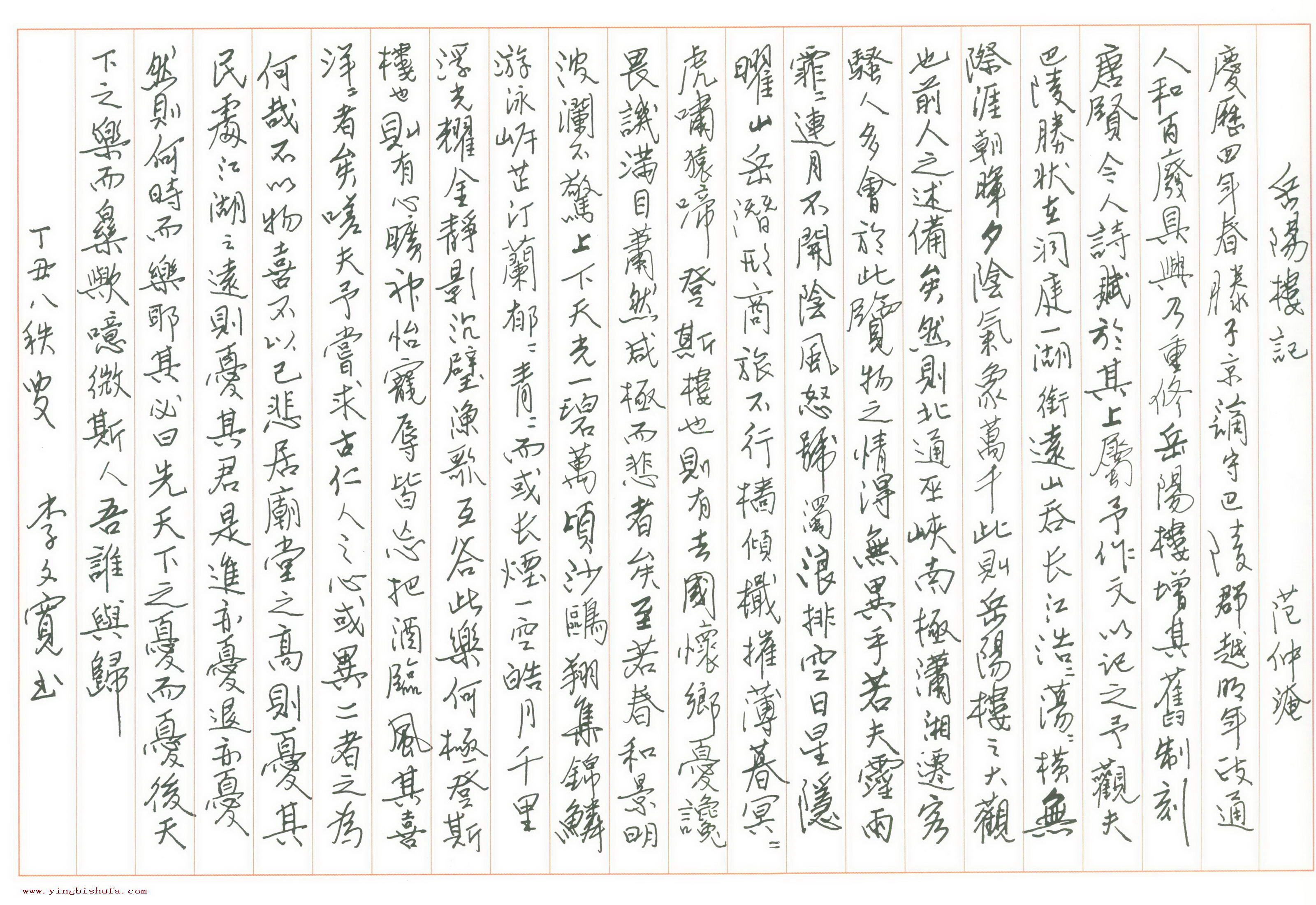 > 硬笔百家书岳阳楼记