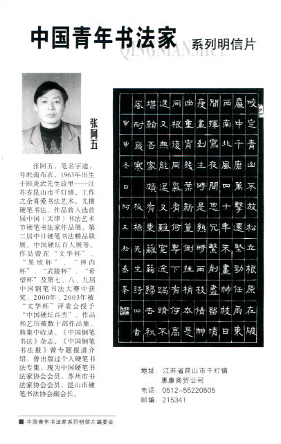 张阿五:中国硬笔书法家协会会员、昆山市硬笔书法协会副会长