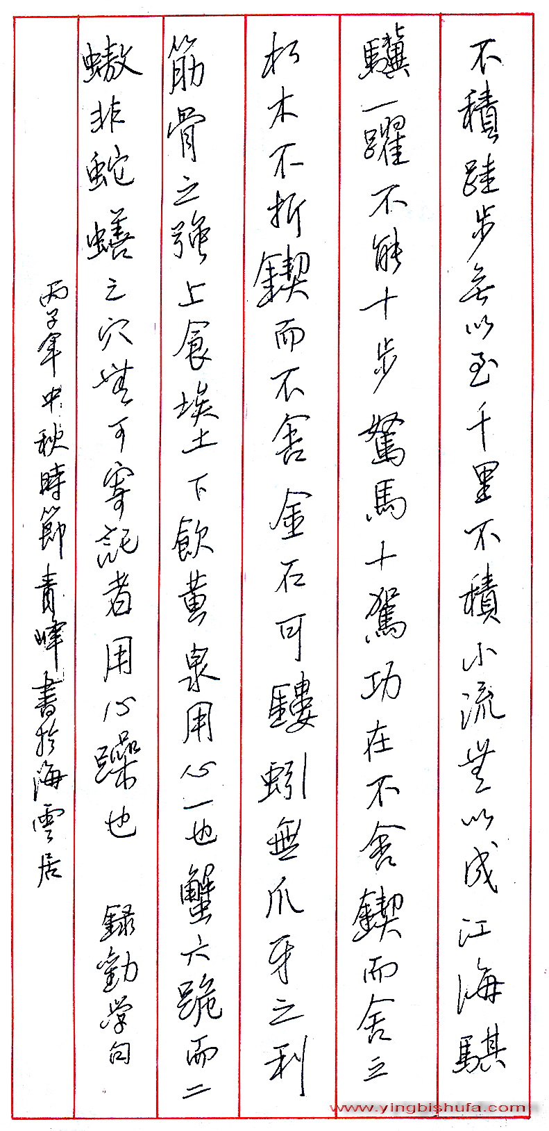 陈青峰录《劝学》句(来源:《中国钢笔书法》杂志)