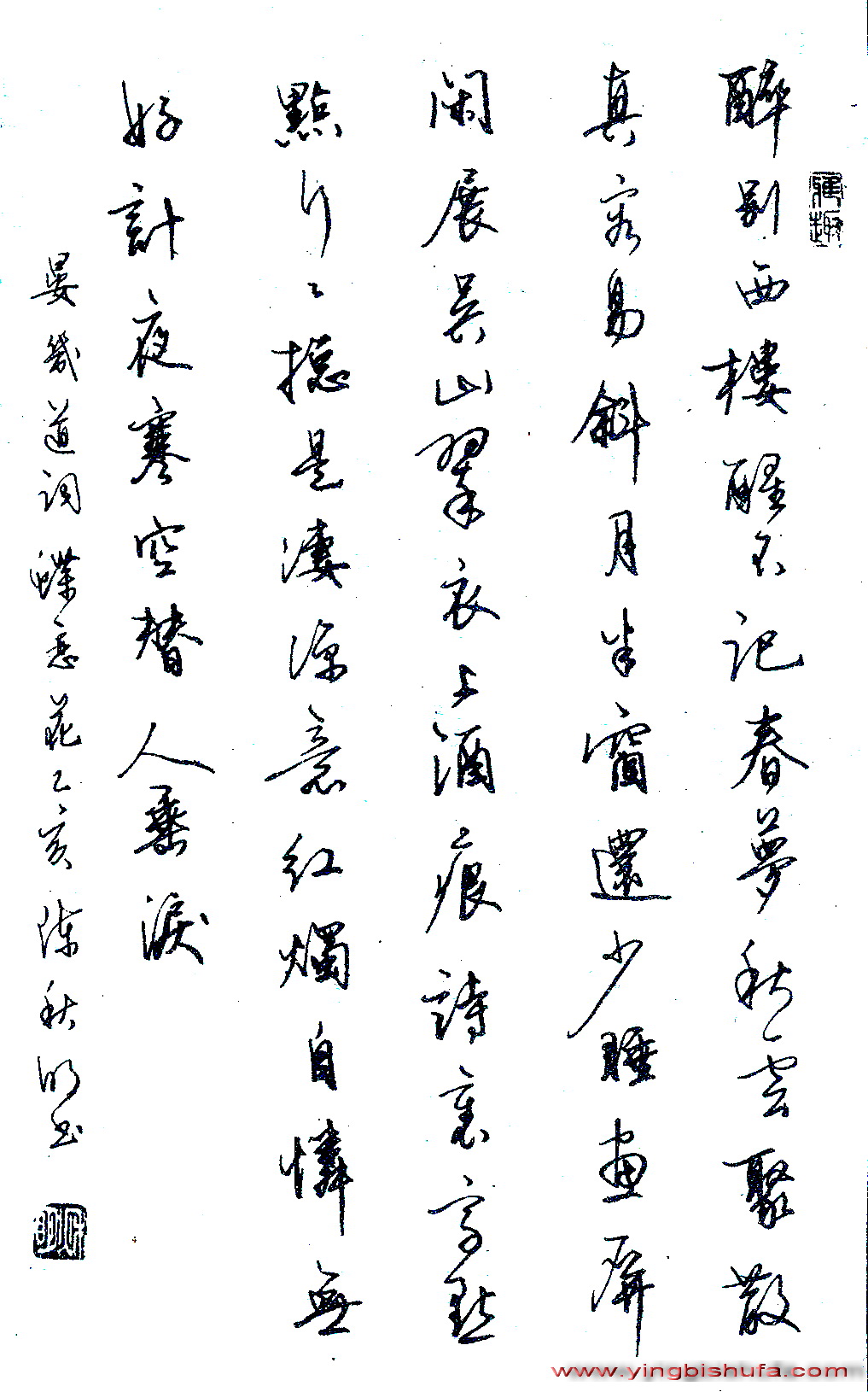 陈秋明录晏几道词《蝶恋花》(来源:《中国钢笔书法》杂志)