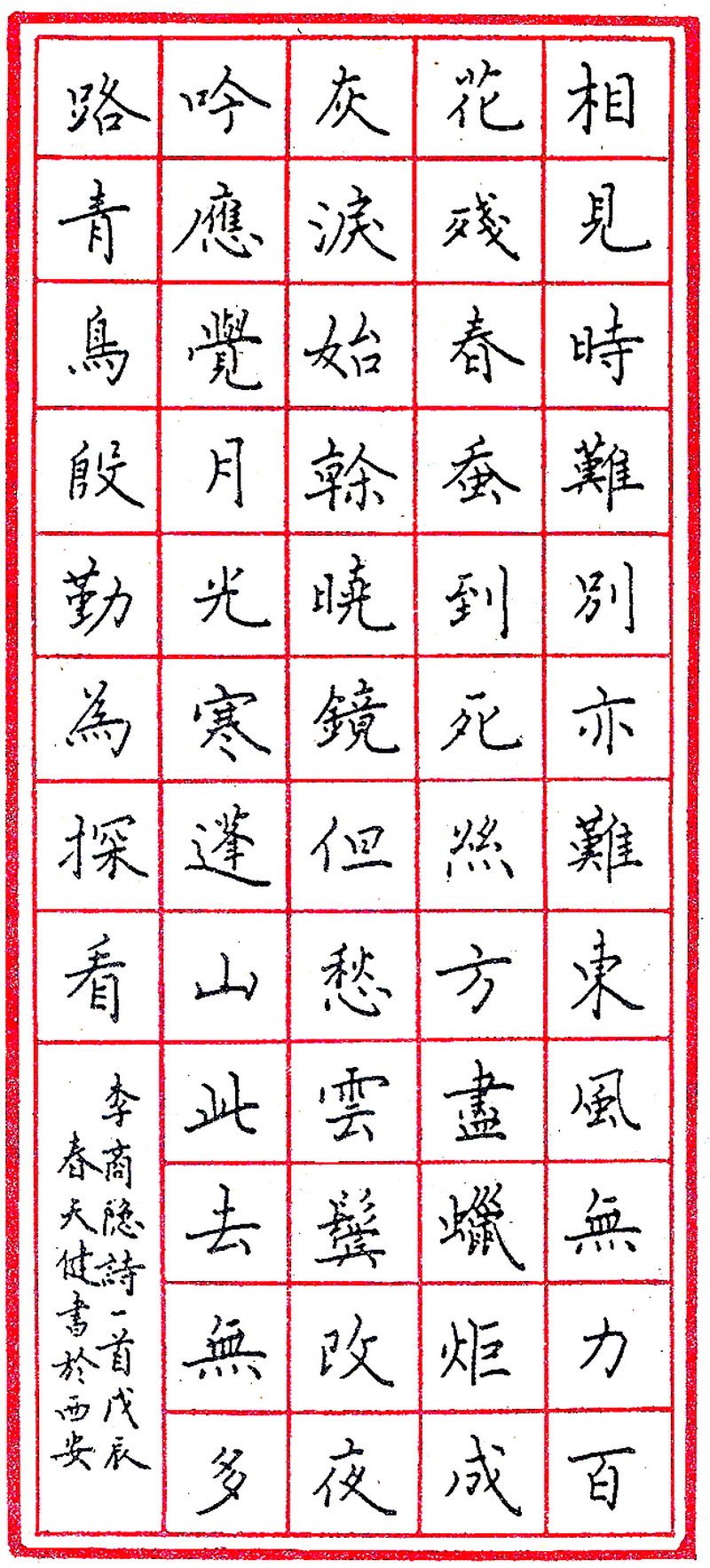 陈天健钢笔录李商隐诗一首(来源:《钢笔圆珠笔正楷字帖》)