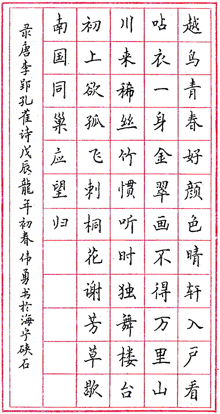 封伟勇钢笔录李郢孔雀诗(来源:《钢笔圆珠笔正楷字帖》)