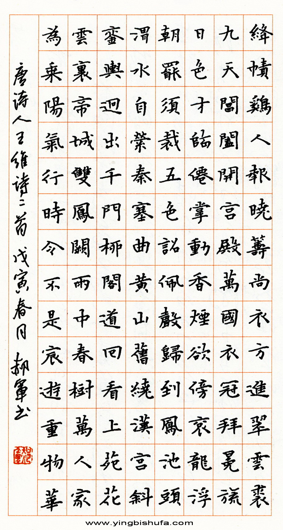 郝军硬笔楷书王维诗二首(来源:《名人名家硬笔书法作品集》)
