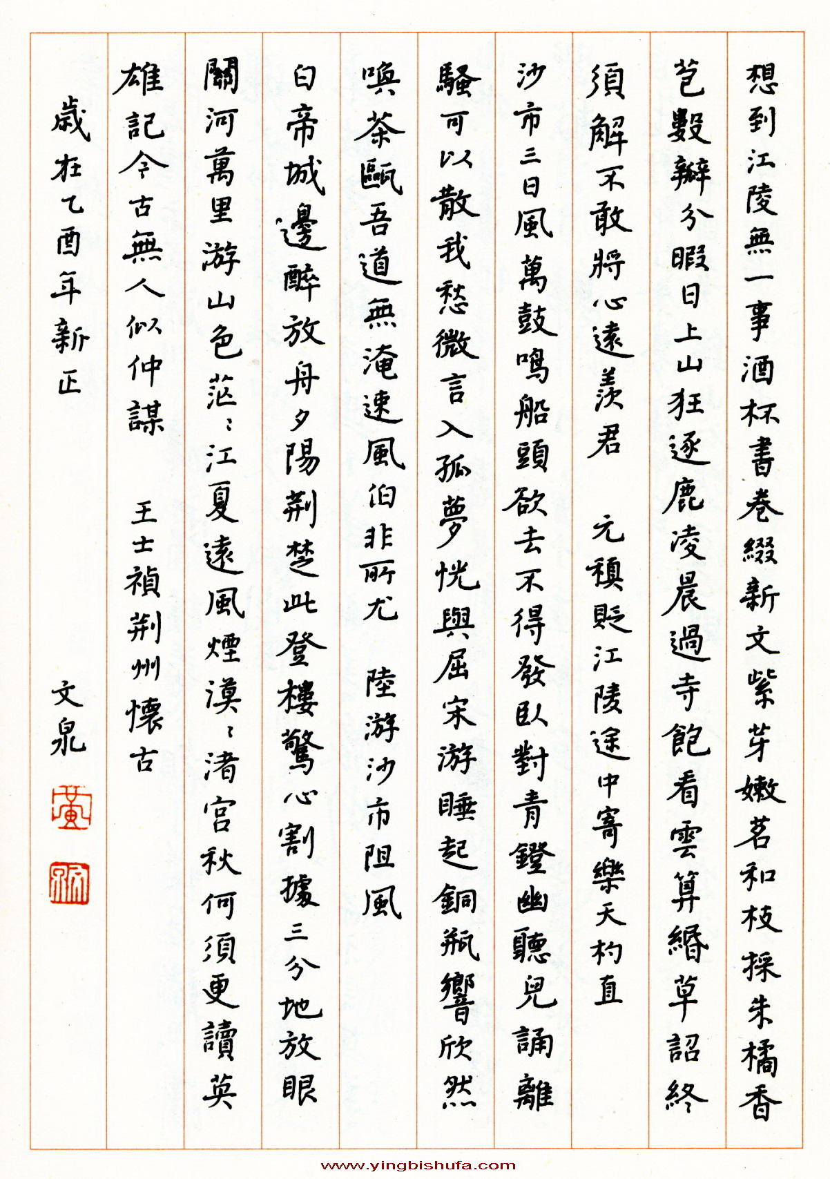 黄文泉硬笔楷书王士祯荆州怀古(来源:《名人名家硬笔书法作品集》)