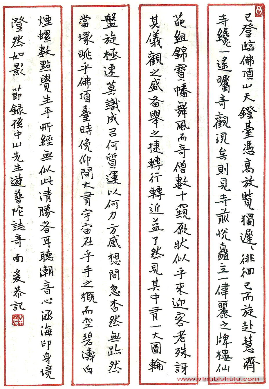 贾长城硬笔节录孙中山游普陀志奇(来源:《中国钢笔书法》杂志)