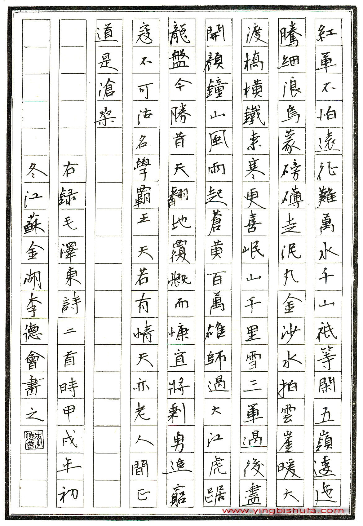 李德会硬笔录毛泽东诗二首(来源:《中国钢笔书法》杂志)