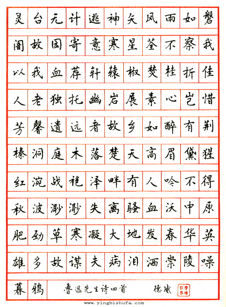 李德盛硬笔楷书鲁迅诗四首(来源:《中国钢笔书法杂志作品精选》)