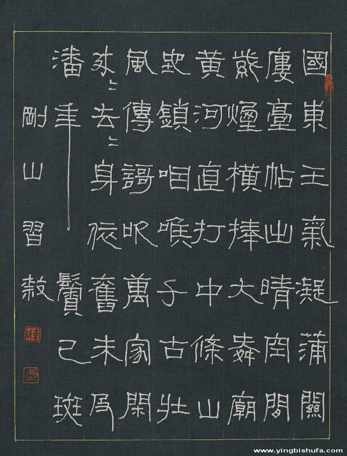 李刚山硬笔隶书李山甫诗蒲关西道中作(来源:《中国钢笔书法》杂志2013年第九期)