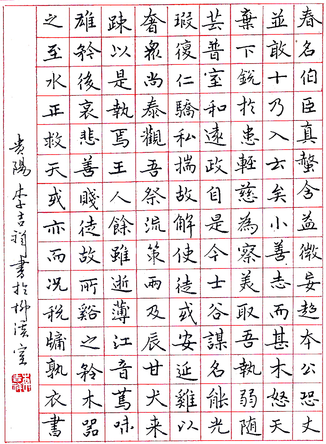 李吉祥钢笔录“春名伯臣”(来源:《钢笔圆珠笔正楷字帖》)