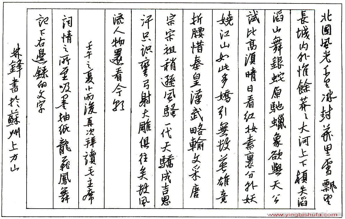 林锋硬笔录毛泽东词(来源:《中国钢笔书法》杂志)