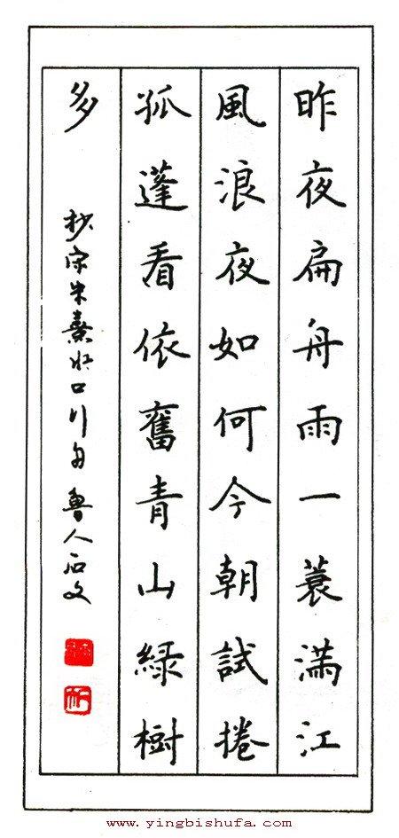 李石文硬笔楷书朱熹水品行舟(来源:《一诗一画钢笔书法名家作品集锦》)