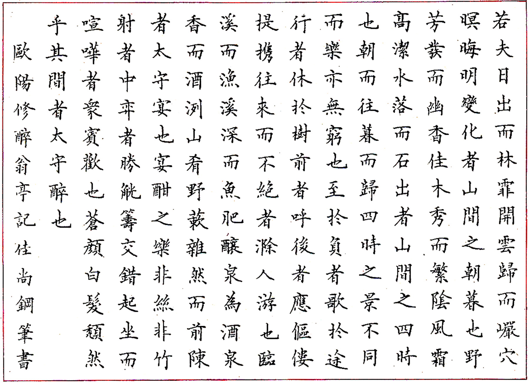 刘佳尚钢笔录欧阳修《醉翁亭记》(来源:《钢笔圆珠笔正楷字帖》)