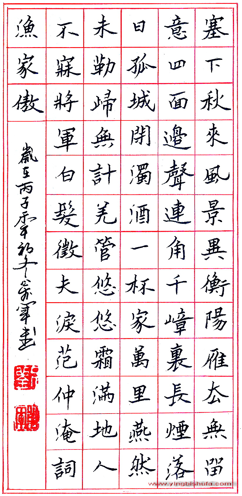 刘万军硬笔录范仲淹词渔家傲 (来源:《中国钢笔书法》杂志)