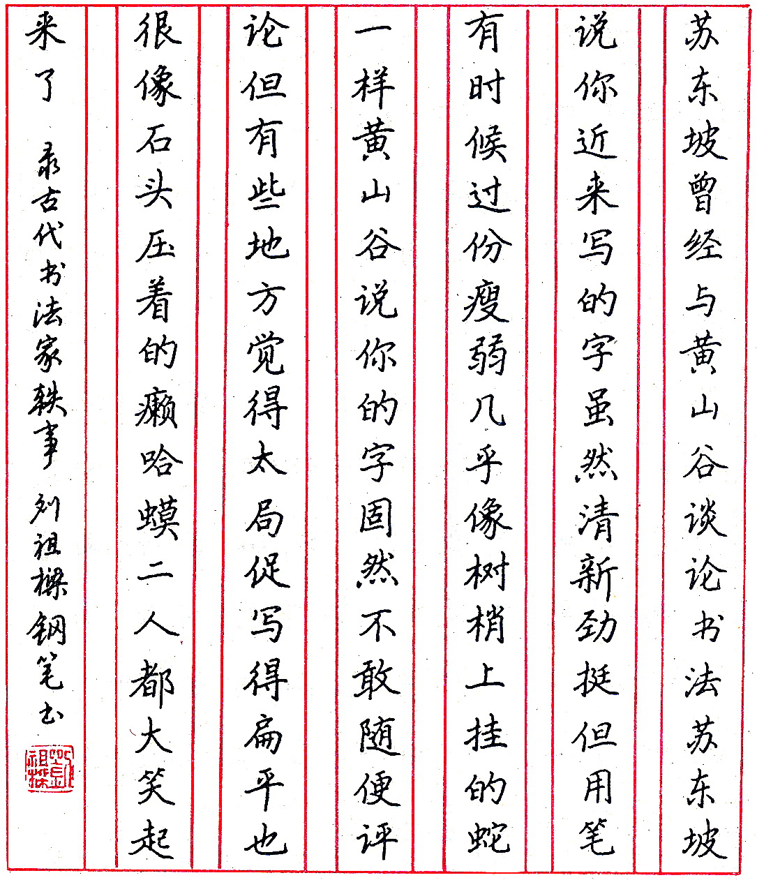 刘祖梁钢笔录古代书法家轶事(来源:《钢笔圆珠笔正楷字帖》)