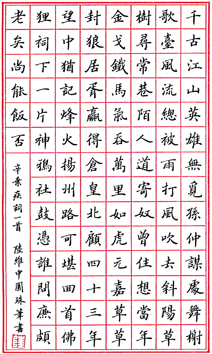 陆维中圆珠笔录辛弃疾词一首(来源:《钢笔圆珠笔正楷字帖》)