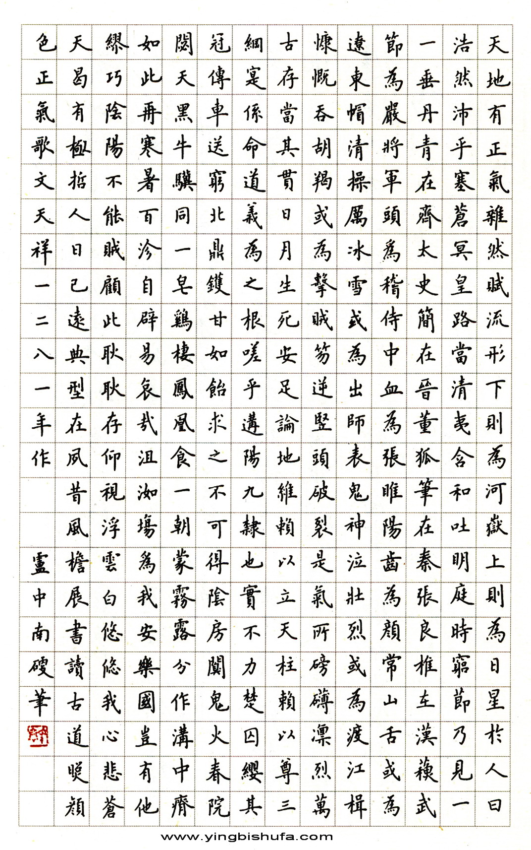 卢中南硬笔楷书天文祥正气歌(来源:《名人名家硬笔书法作品集》)