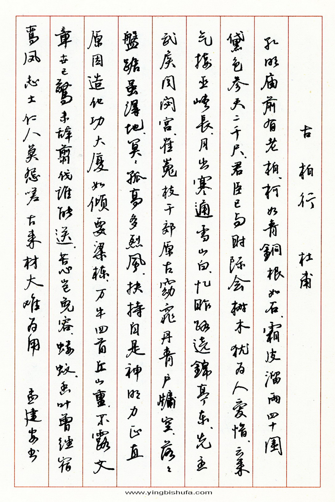 孟建安硬笔行书杜甫诗古柏行(来源:《名人名家硬笔书法作品集》)