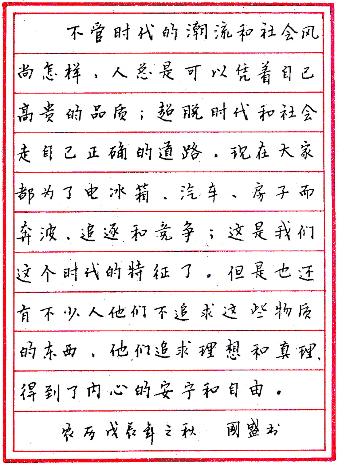 苗国盛钢笔录《走自己正确的道路》》(来源:《钢笔圆珠笔正楷字帖》)