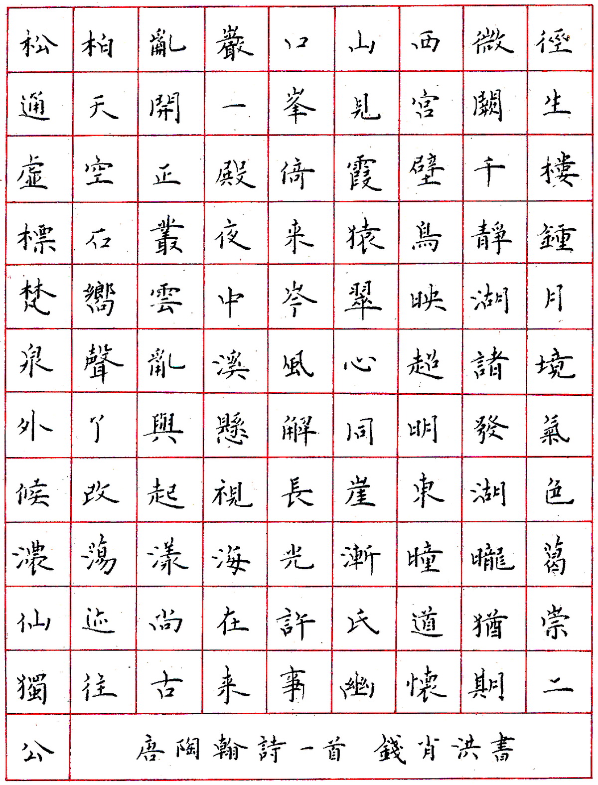 钱肖洪圆珠笔录陶翰诗一首(来源:《钢笔圆珠笔正楷字帖》)