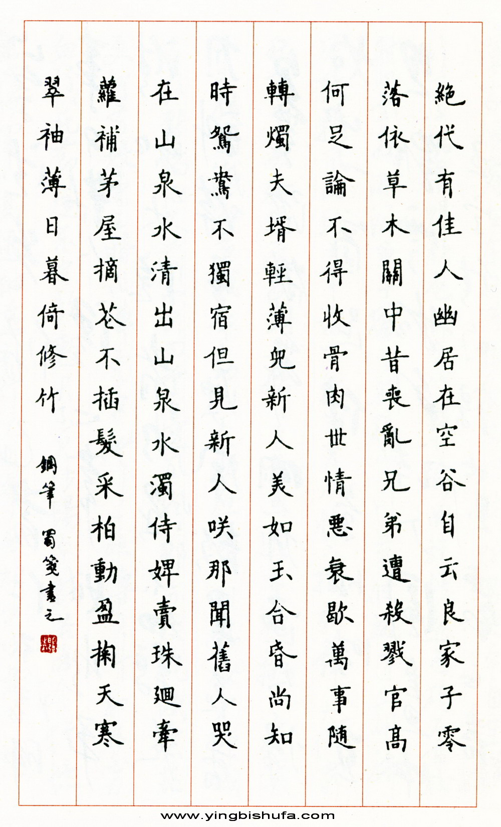 邱明强硬笔楷书杜甫诗(来源:《名人名家硬笔书法作品集》)