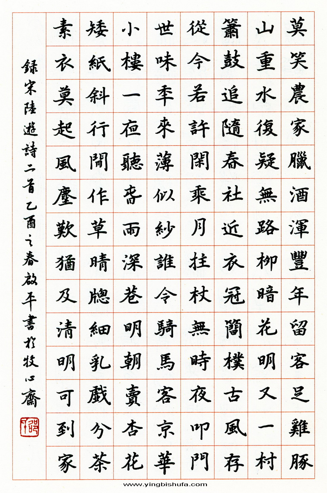 邵启平硬笔楷书陆游诗二首(来源:《名人名家硬笔书法作品集》)