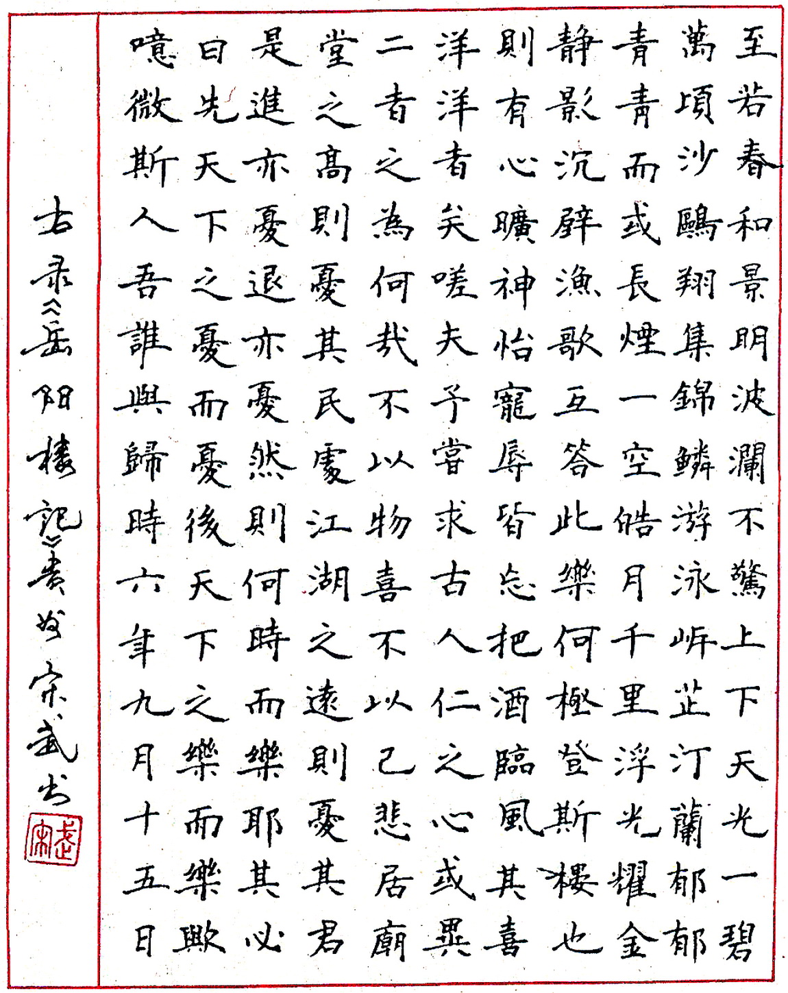 宋武钢笔节录范仲淹《岳阳楼记》(来源:《钢笔圆珠笔正楷字帖》)
