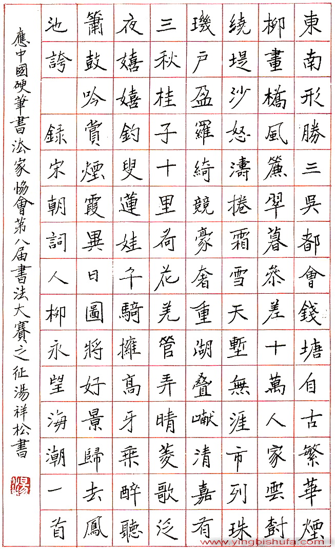 汤祥松硬笔录宋柳永词(来源:《中国钢笔书法》杂志)