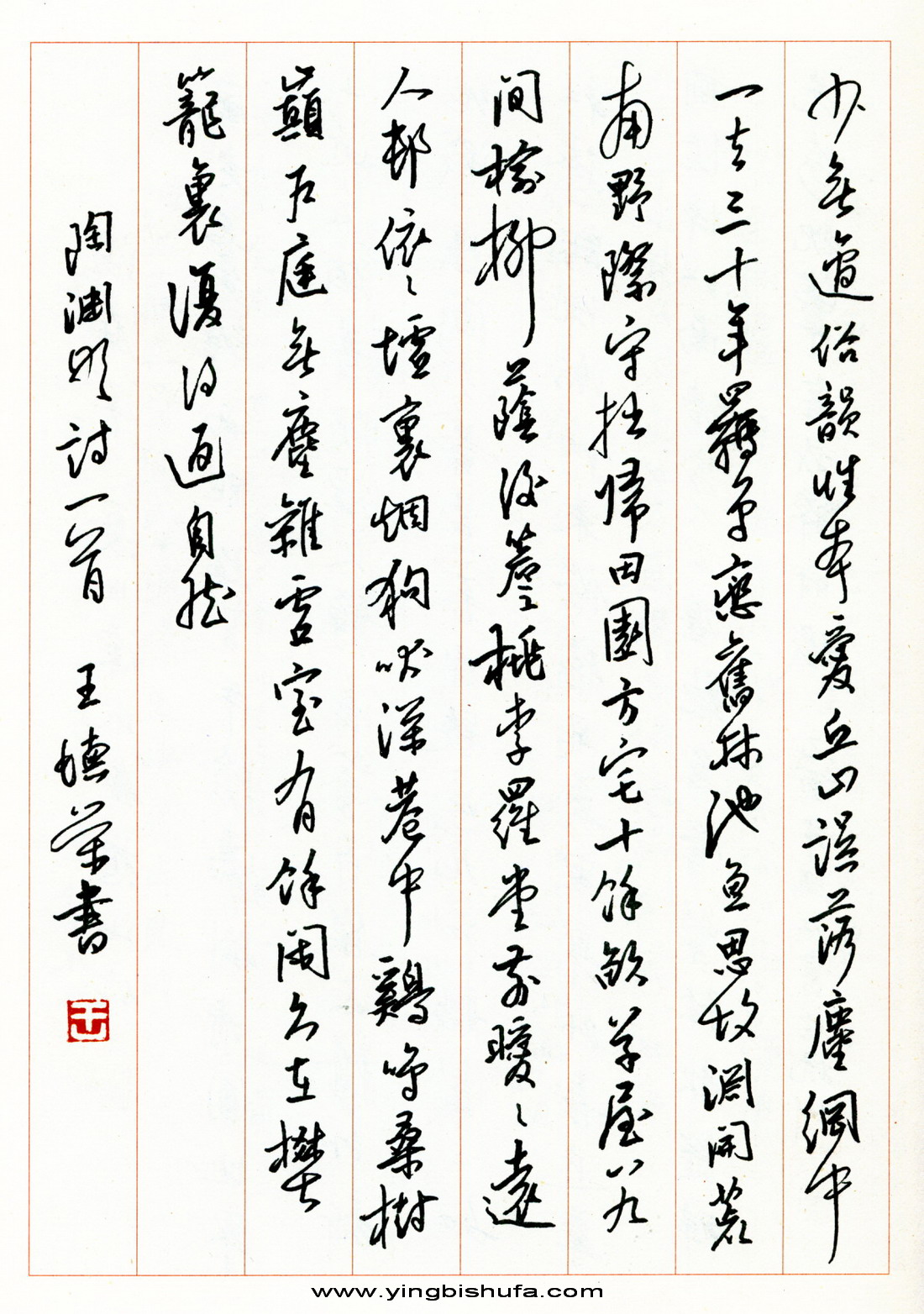 王德荣硬笔行书陶渊明诗一首(来源:《名人名家硬笔书法作品集》)