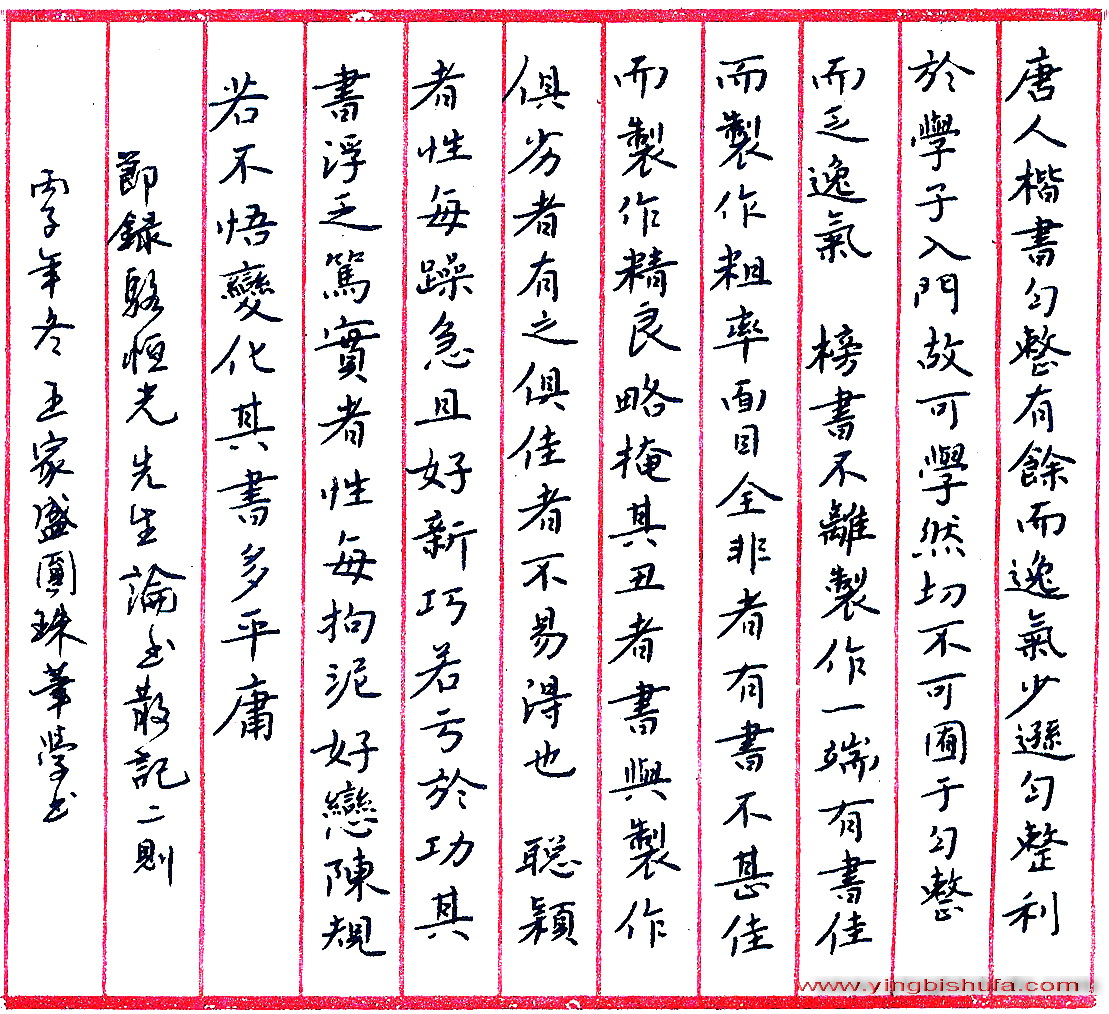 王家盛硬笔节录骆恒光论书散记二则 (来源:《中国钢笔书法》杂志)