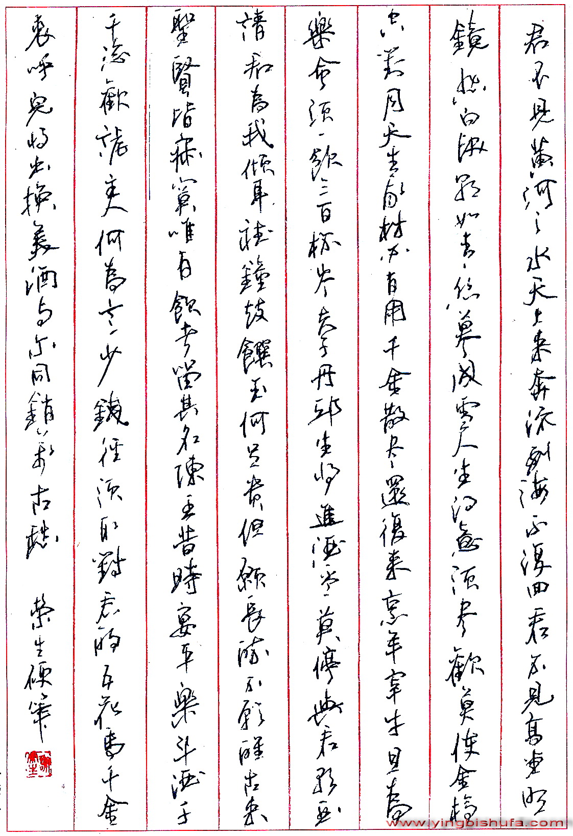 谢荣生硬笔录“君不见黄河之水” (来源:《中国钢笔书法》杂志)