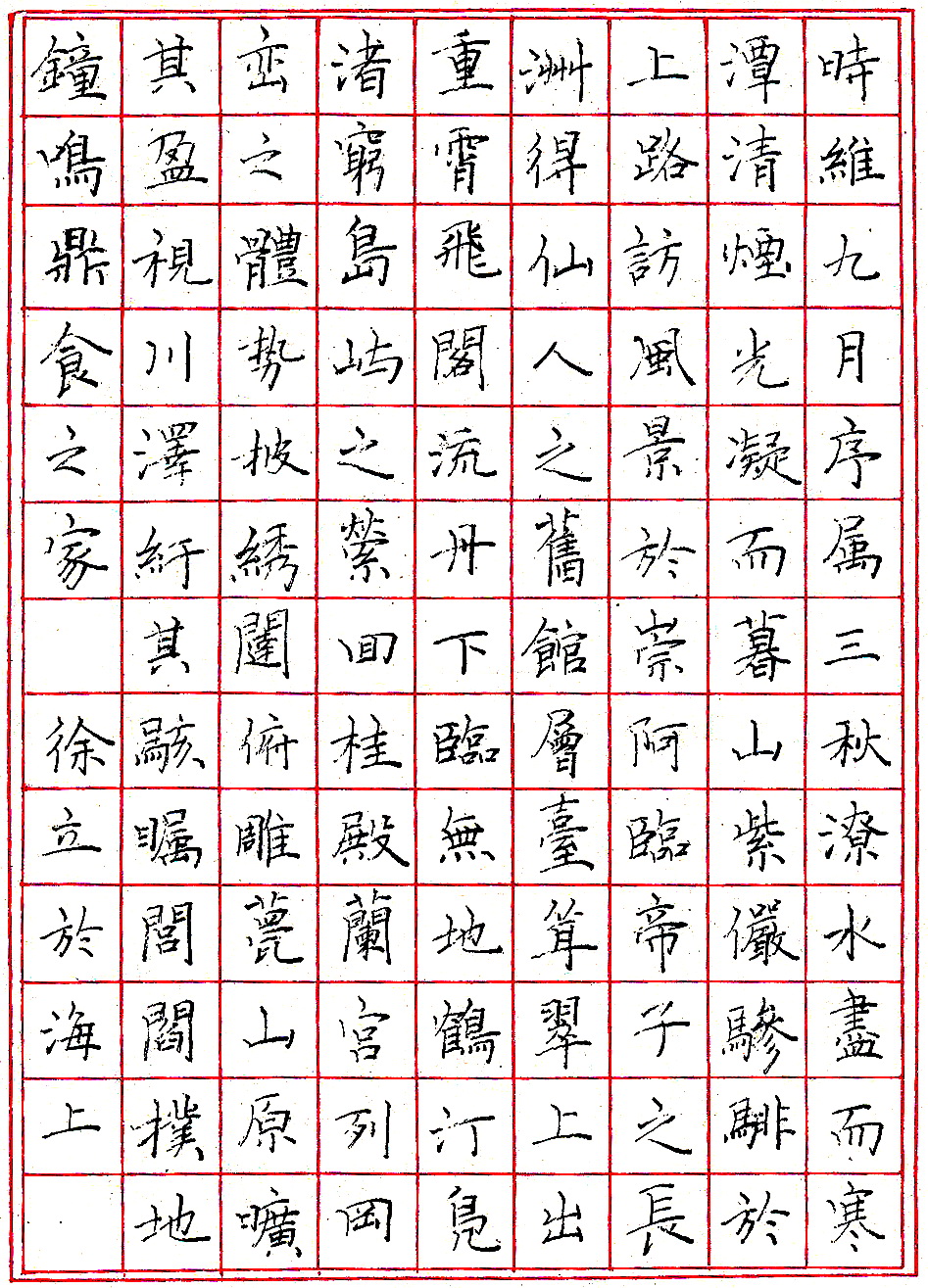 徐立圆珠笔节录《滕王阁》(来源:《钢笔圆珠笔正楷字帖》)