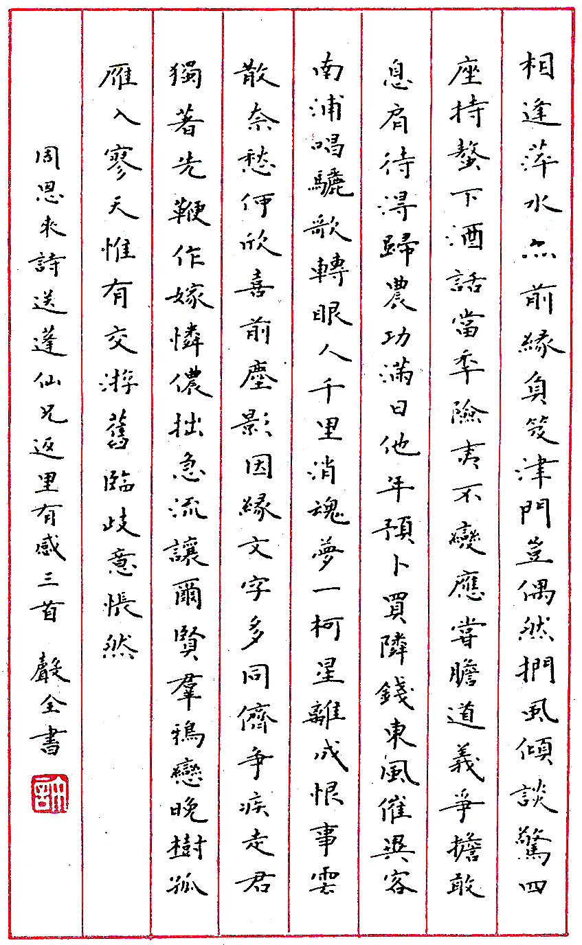 许声全钢笔录周恩来诗三首(来源:《钢笔圆珠笔正楷字帖》)