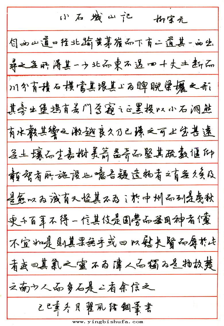 硬笔行书柳宗元小石城山记(来源:《中国钢笔书法杂志作品精选》)