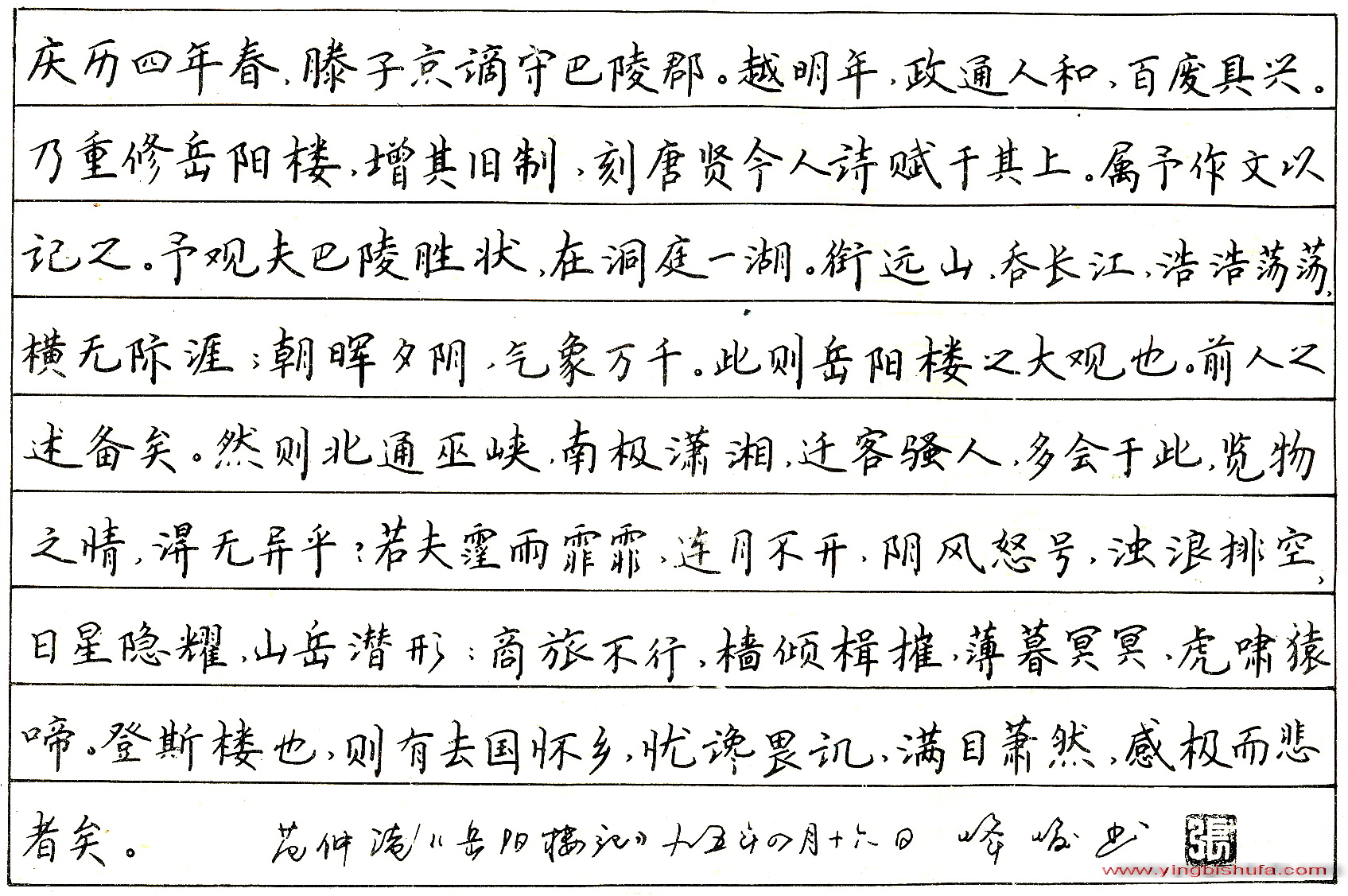 张峰峻硬笔节录范仲淹岳阳楼记(来源:《中国钢笔书法》杂志)