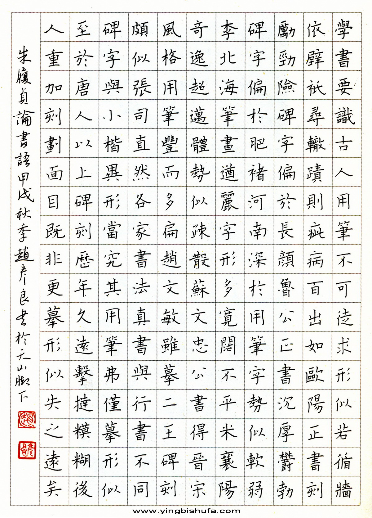 赵彦良硬笔楷书朱履贞论书语(来源:《名人名家硬笔书法作品集》)