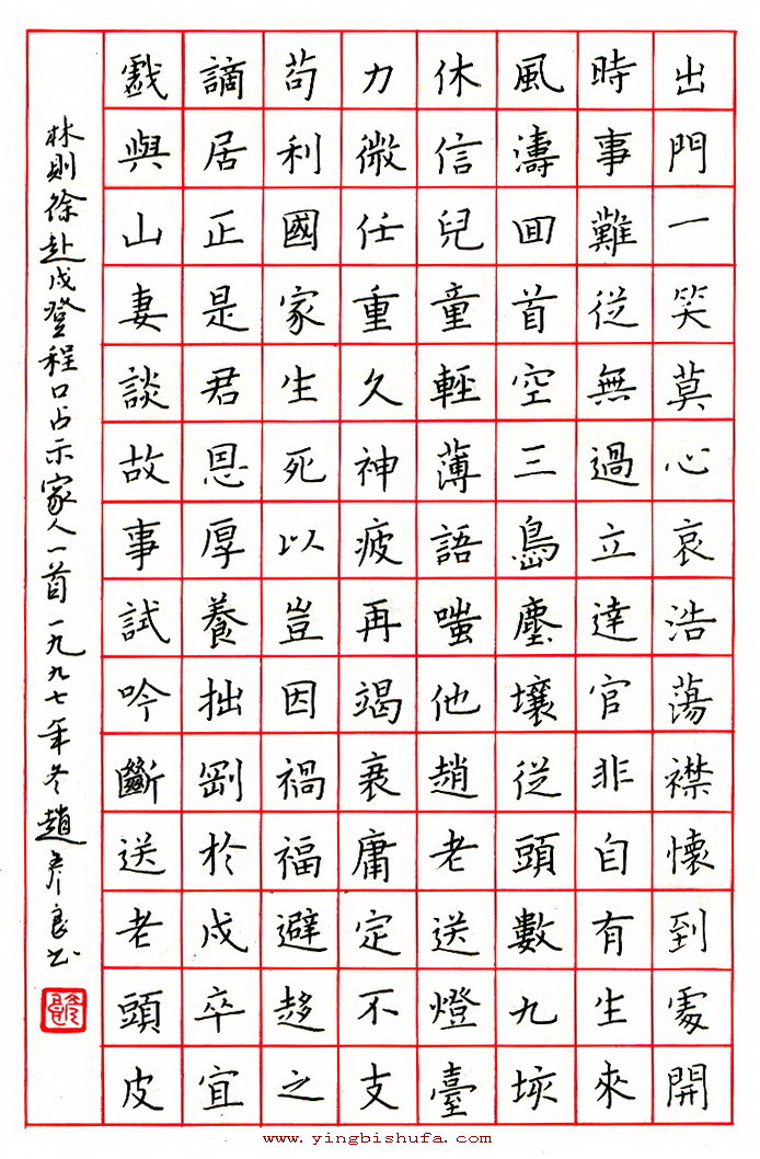 赵彦良硬笔楷书林则徐赴戌登程口首占示家人一首(来源:《当代中国硬笔书法21家》)
